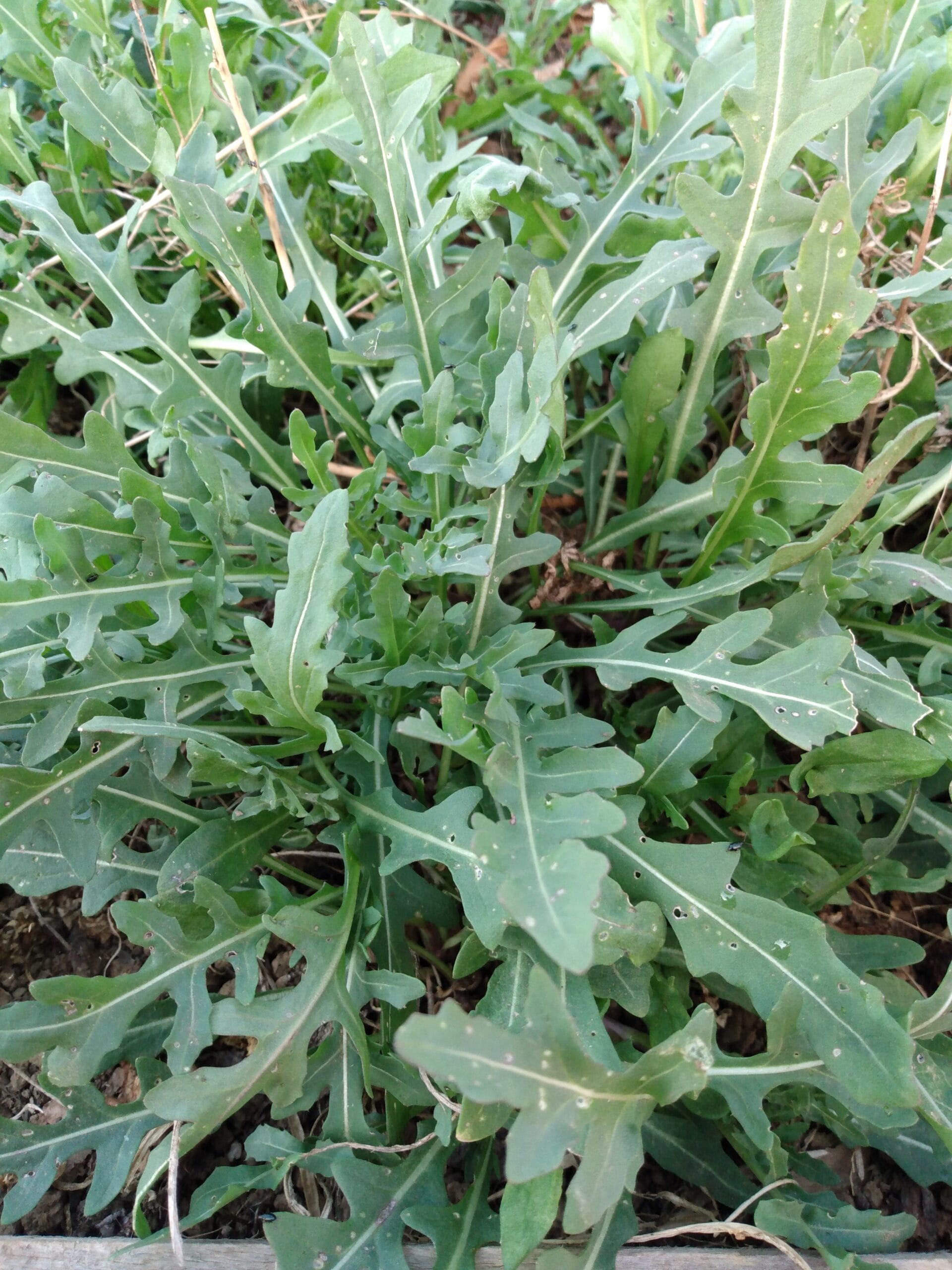 (Diplotaxis spp) Aussi connue sous le nom de roquette sauvage. Lorsque nous avons cultivé des légumes verts résistants au froid dans une serre pour la première fois en 2003, nous avons inclus la roquette sylvetta dans l’essai et sommes rapidement tombés amoureux de la saveur intense de la roquette et de la nature vivace de cette salade verte. Il nous a fallu quelques années pour finalement développer la parcelle dans notre serre non chauffée, où elle brille vraiment. Capable de pousser amplement pendant les saisons intermédiaires, lorsque les altises ne sont pas présentes, elle forme un petit arbuste et se ressème facilement à partir de ses fleurs presque continues (et comestibles). Originaire de la région méditerranéenne, la sylvetta est documentée comme ayant été récoltée depuis la préhistoire. Nous constatons qu’à l’extérieur, dans notre climat, elle n’hiverne pas toujours et souffre davantage des altises, mais peut toujours être semée et récoltée comme de la roquette ordinaire.
