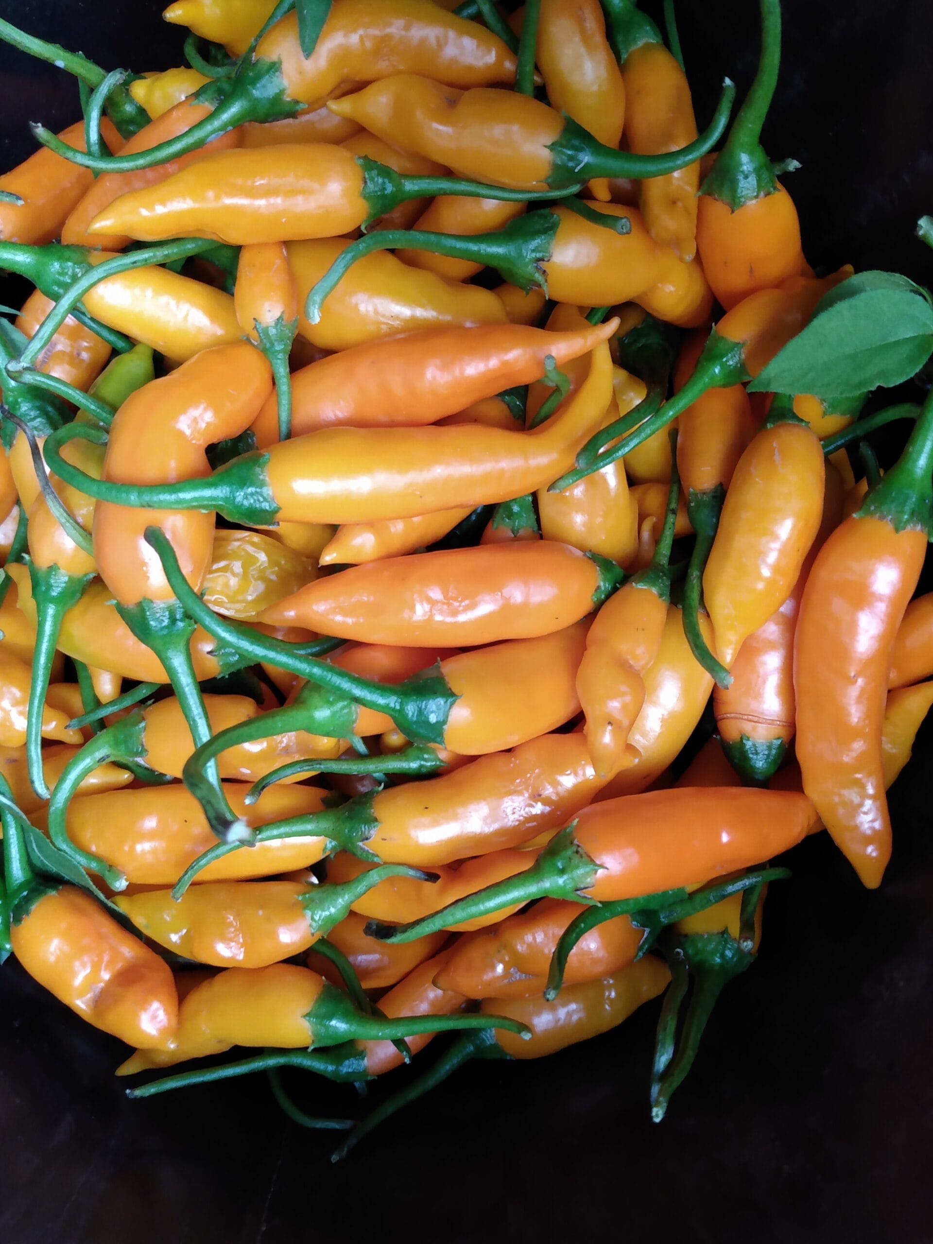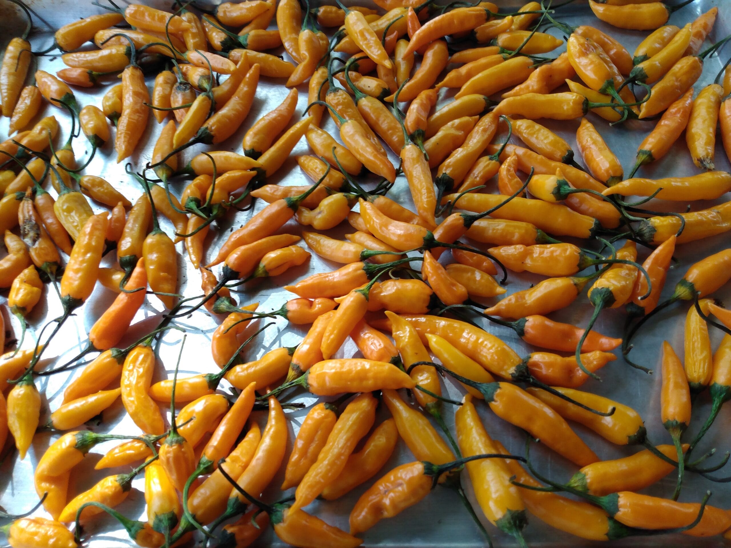 (Capsicum baccatum) A suberb hot pepper! A tad less spicy than cayenne with a citrus-like sweetness, Criolla Sella Hot Pepper is tasty fresh or dries easily. Beautifully golden orange 3 inch long peppers with thin skin. Prolific early producers, criolla sella is native to Bolivia and adapted to cooler temperate climates so performs exceedingly well outdoors in our Maritime climate. Farm favourite!