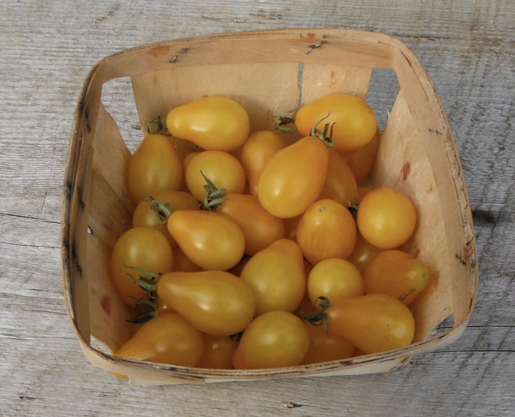 Small and sweet fruit that are shaped like tiny pears. Tall plants are huge producers, and will keep bearing heavily right up to the first frost. Indeterminate.